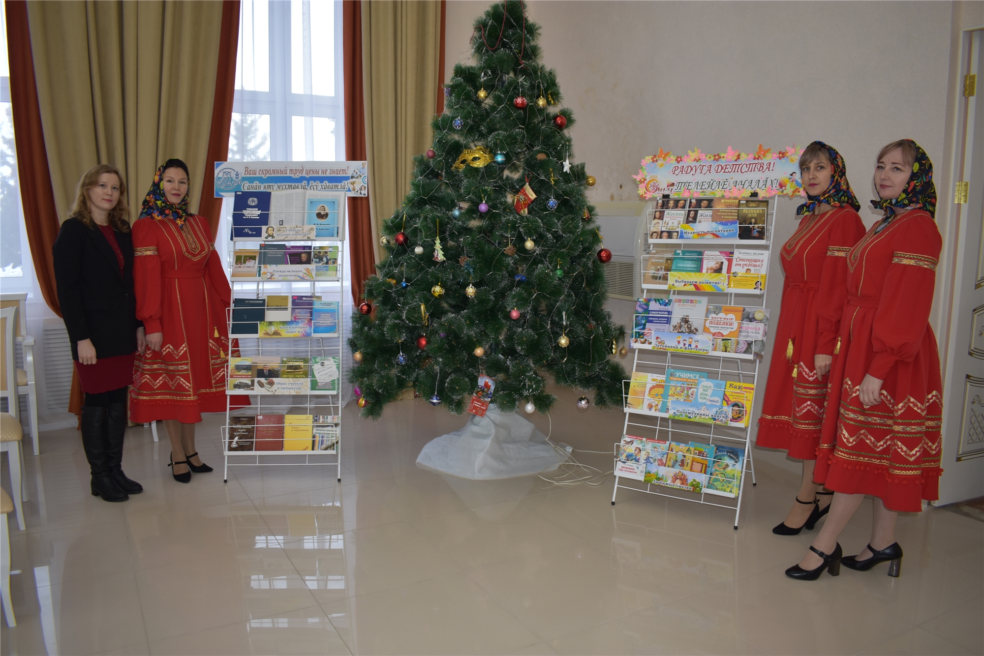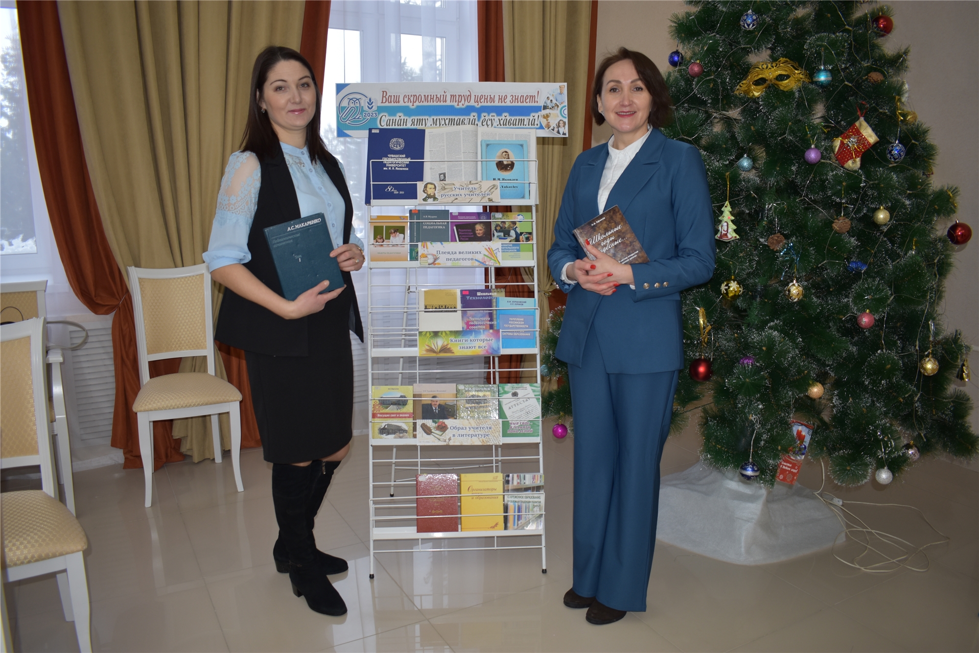 Центральная библиотека Моргаушского муниципального округа присоединилась к этому мероприятию и экспонировала две книжные выставки «Ваш скромный труд цены не знает! Санăн яту мухтавлă, ĕçÿ хăватлă»» и «Радуга детства! Телейлĕ ачалăх!».